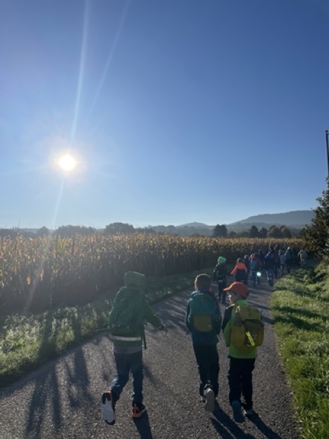 Am Donnerstag, den 1. Oktober staunte sicher der ein oder andere Hauenebersteiner, als die gesamte Schülerschaft der örtlichen Grundschule frühmorgens fröhlich durch die Straßen zog. Passend zur Jahreszeit stand an diesem Tag nämlich für alle eine Herbstwanderung auf dem Stundenplan. Schöner hätte auch das Wetter an diesem Tag nicht sein können. Bei herbstlichen Temperaturen, blauem Himmel und strahlendem Sonnenschein war die gemeinschaftliche Aktion eine willkommene Abwechslung zum Unterrichtsalltag. Der Weg führte über Wiesen und Felder bis hin zum Schloss Favorite in Förch, das Ziel der Wanderung. Die Kinder staunten über strahlende Sonnenblumen, freuten sich über die schottischen Hochlandrinder entlang der Wegstrecke, sammelten Herbstblätter aus denen im Nu kleine Herbststräuße wurden und suchten nach liegen gebliebenen Maiskolben auf dem zum Teil schon abgeernteten Maisfeld. Im Schlossgarten blieb sogar etwas Zeit für das freie Spiel, bevor sich alle wieder fröhlich und zufrieden auf den Rückweg begaben.